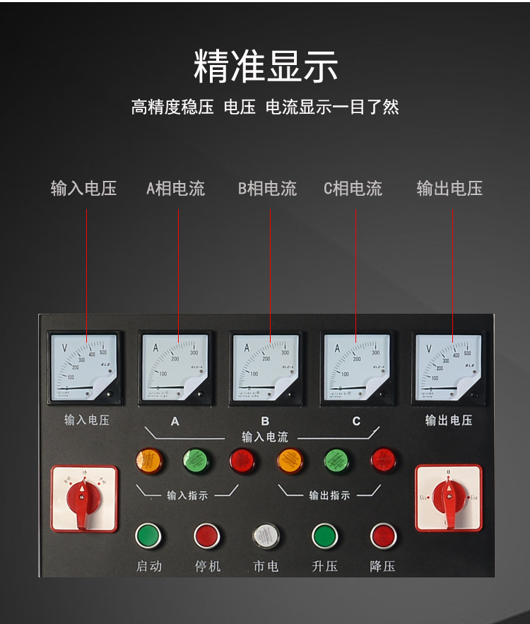 SBW系列三相全自動補償式電力穩壓器,具有容量大、效率高、精度高、穩壓范圍寬、保護功能強、無波形畸變、電壓調節平穩、運行可靠及使用維護簡單等優點。適合負載廣泛,能承受瞬時過載,可長期持續工作,設有過壓、過流、缺相、相序保護及機械故障自動保護。該穩壓器由補償模塊、AD采樣模塊、單片機控制模塊、升壓/降壓等操作模塊、系統供電模塊及顯示模塊等幾大模塊組成